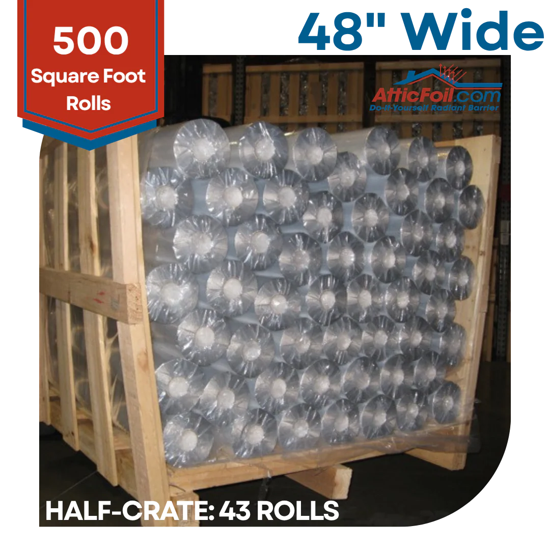 48" wide crate includes 43 rolls (500 sq ft each) = 21,500 sq. ft.